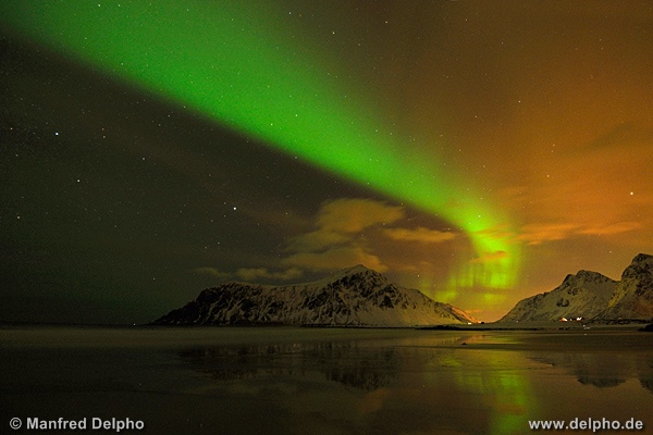 Polarlicht, Flakstad, Lofoten, Norwegen