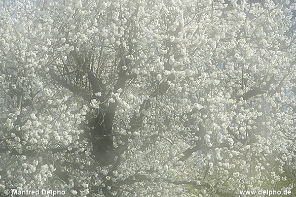 Kirschblüte im Nebel, Werratal, Nordhessen