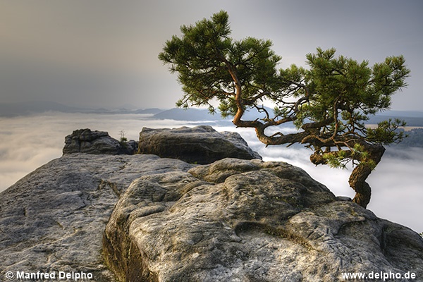 Kiefer auf dem Lilienstein, Nationalpark Sächsische Schweiz, Sachsen