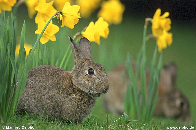 Wildkaninchen in Osterglocken, Kassel, Nordhessen