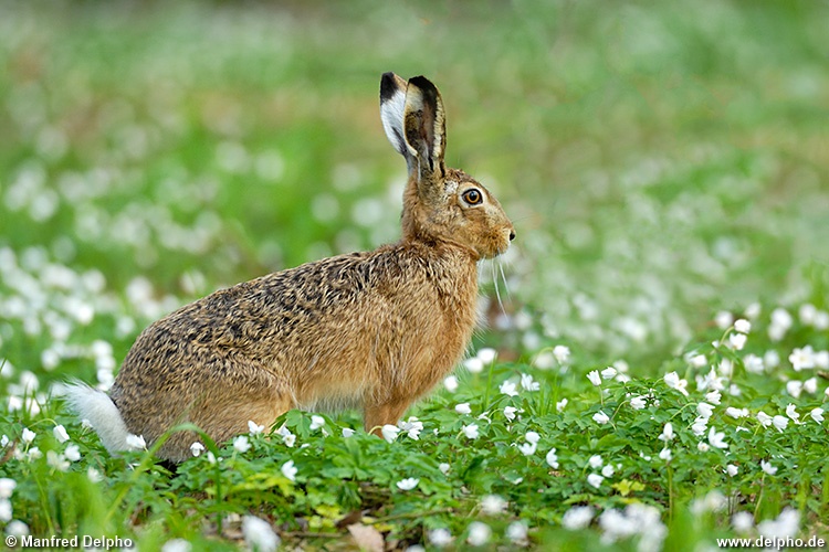 Feldhase in Buschwindröschen, Gudensberg, Nordhessen