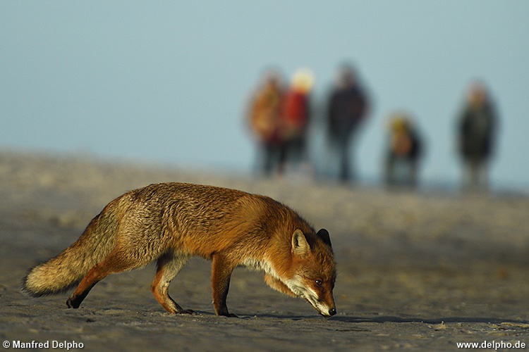 Begegung am Darßer Weststrand (Rotfuchs), Nationalpark Vorpommersche Boddenlandschaft, Mecklenburg-Vorpommern