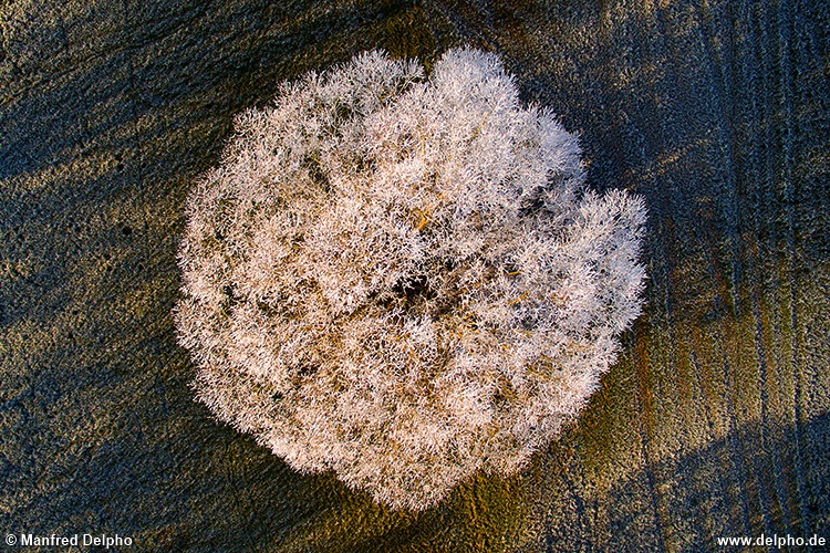Kopfweide im Raureif, Emsniederung, Gudensberg, Nordhessen