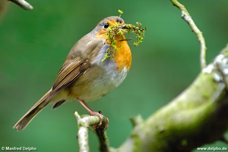 Rotkehlchen mit Nistmaterial, eigener Garten, Gudensberg (Vogel des Jahres 2022)