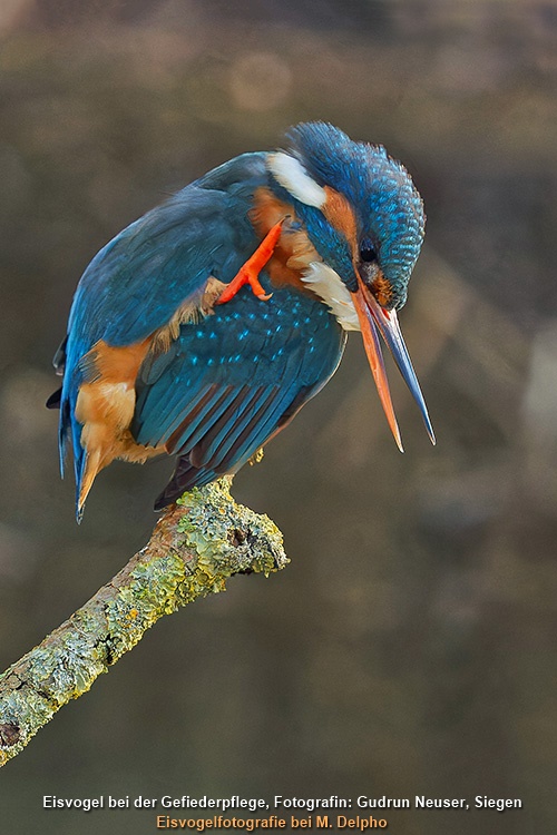 Eisvogel bei der Gefiederpflege, Fotografin: Gudrun Neuser, Siegen - Eisvogelfotografie bei M. Delpho