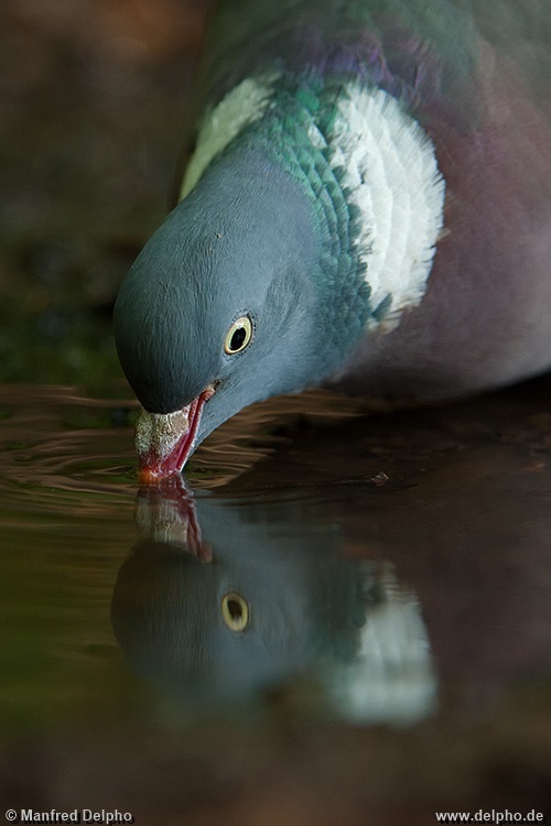 Trinkende Ringeltaube; Gartenteich; Gudensberg, Nordhessen