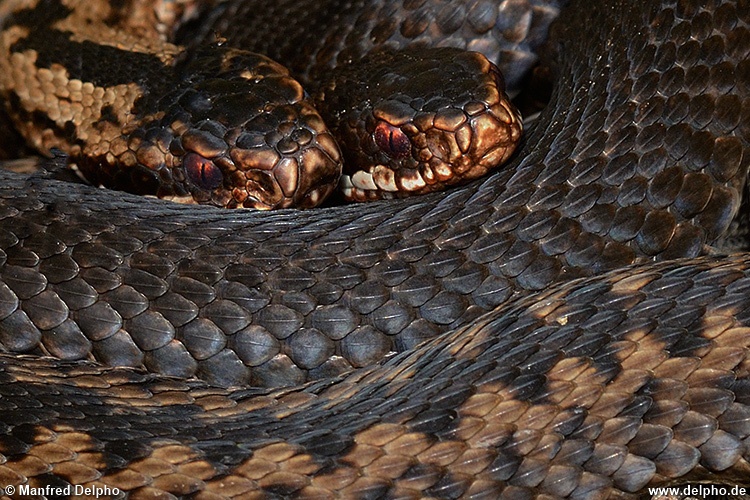 Kreuzotterpaarung (schwarze u. braune Variante), Darßer Ort, NP Vorpommersche Boddenlandschaft