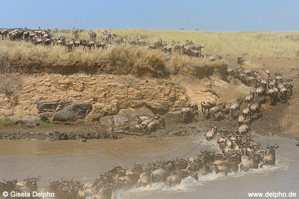 Gnus überqueren Mara River · Masai Mara, Kenia