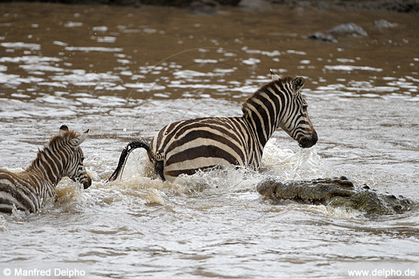 Krokodil greift Zebra an · Mara River, Masai Mara, Kenia