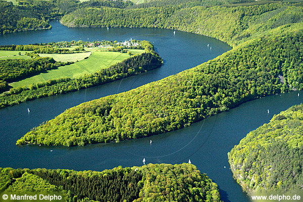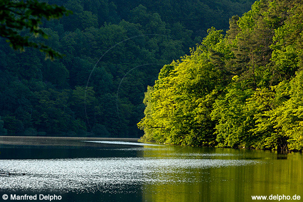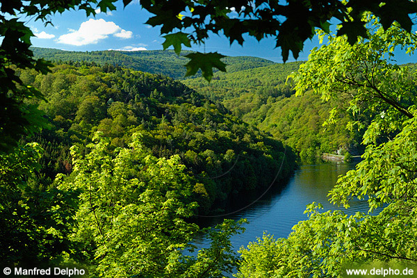 Mehr als 500 Quellen entspringen aus den Tiefen der Kellerwaldberge. An den Nordhängen windet sich der fjordartige Edersee |