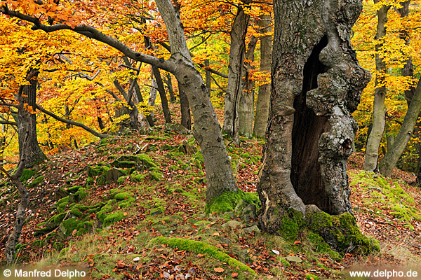 Er ist einer der größten Buchenwälder Europas und die größte durch Straßen und Siedlungen unzerschnittene Waldfläche Deutschlands. Mächtige alte Buchen, knorrige Eichen, naturnahe Bachtäler und Waldwiesen prägen das Bild dieser nordhessischen Mittelgebirgslandschaft |