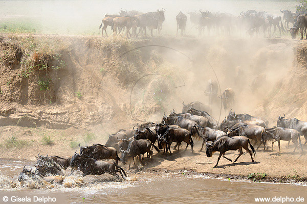 Gnus crossing Mara River · Masai Mara, Kenia