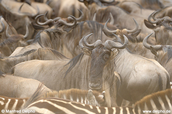 Gnus at Mara River · Masai Mara, Kenia